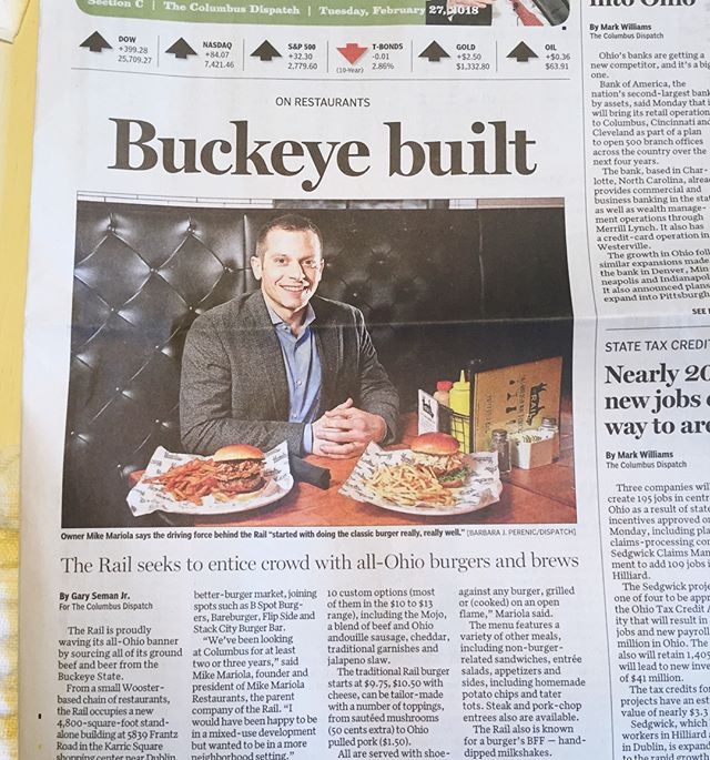 Dublin, OH – Feb. 26, 2018 – Mike Mariola Restaurants today announced the opening of The Rail, a full-service restaurant featuring burgers, steaks, brunch and the largest selection of Ohio craft brews, in Dublin. This is the first Rail location outside of Northeast Ohio.